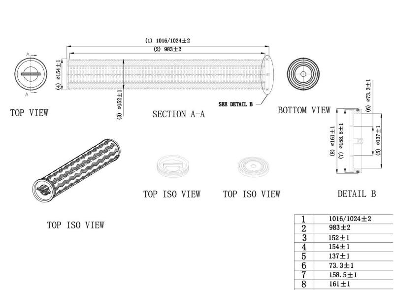 3. Filter element size and drawing outer